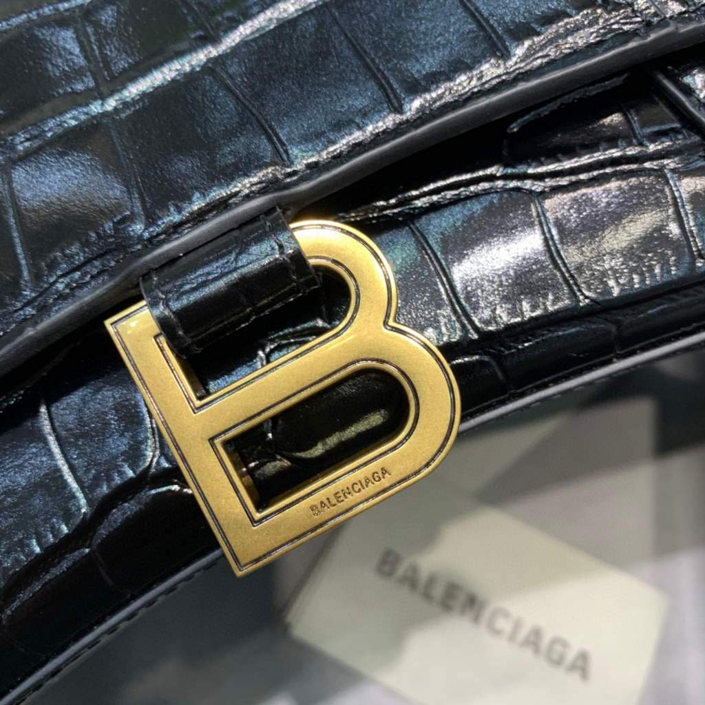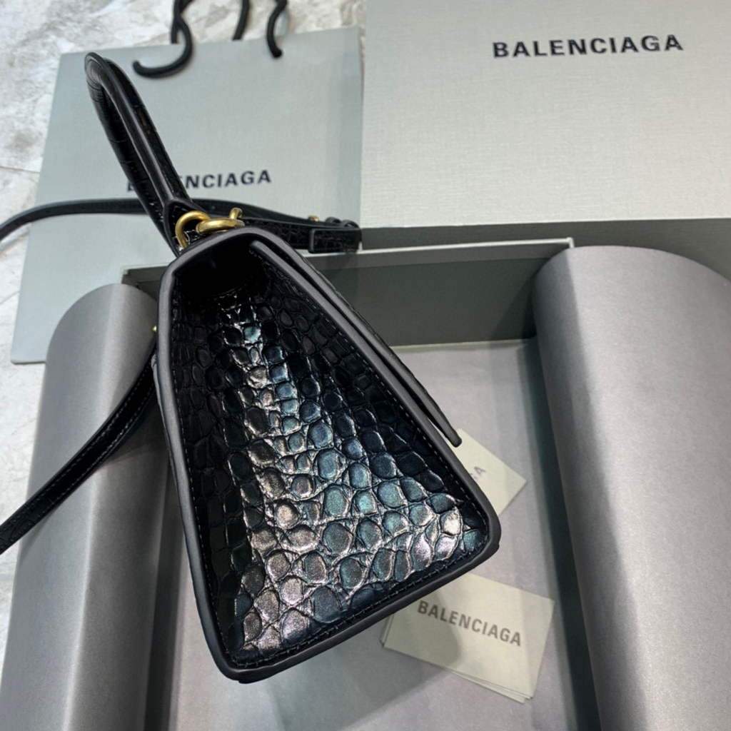 Balenciaga 593546 Classista per clessidra per crocodile Borsa oro nero