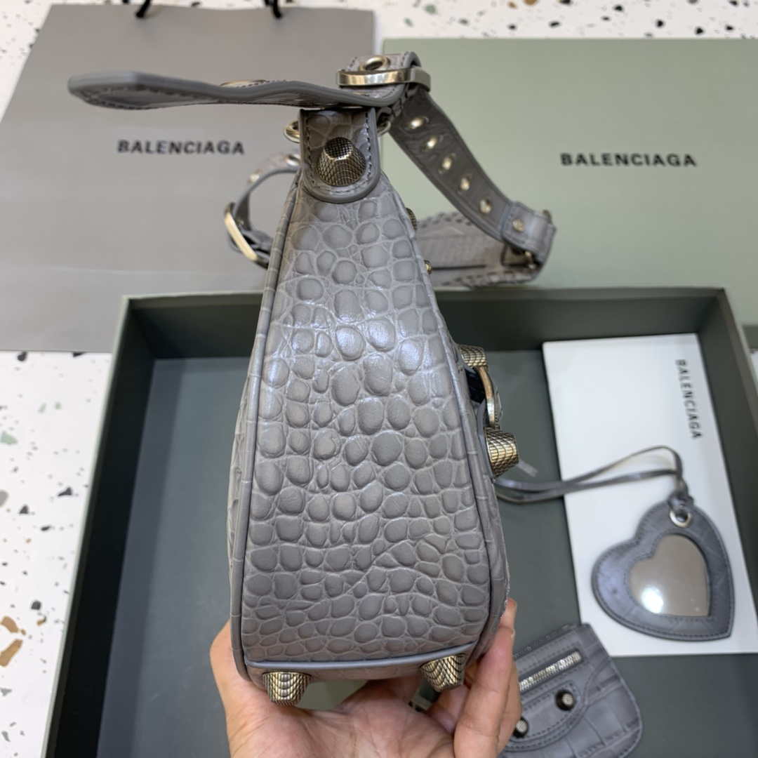 Balenciaga 67130723 Le Cagole Piccola spalla Crocodile Borsa in rilievo in grigio