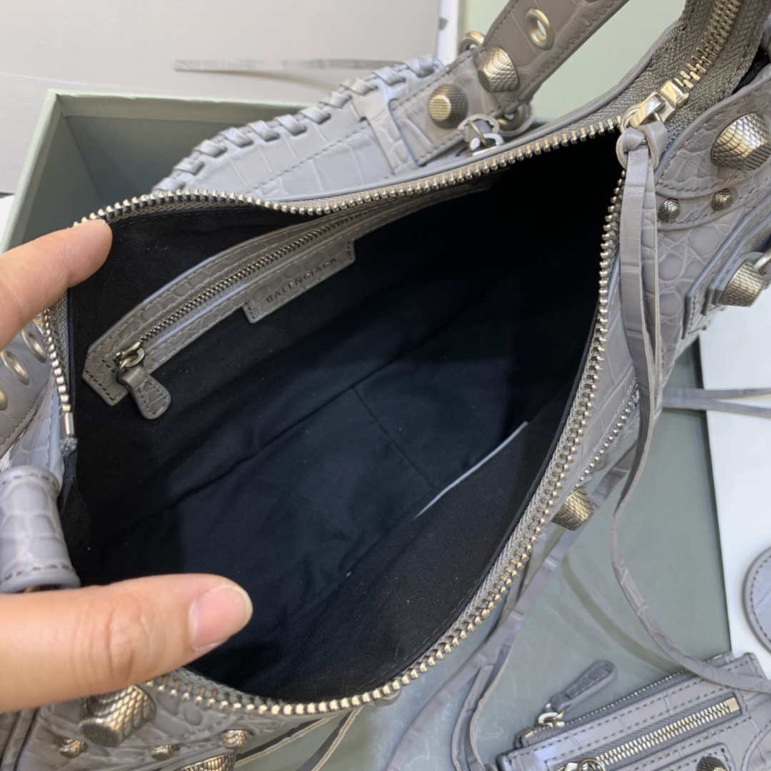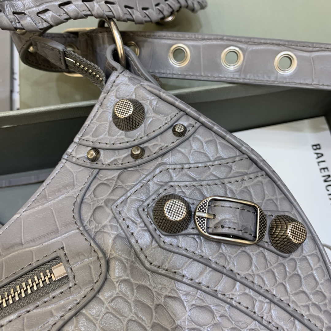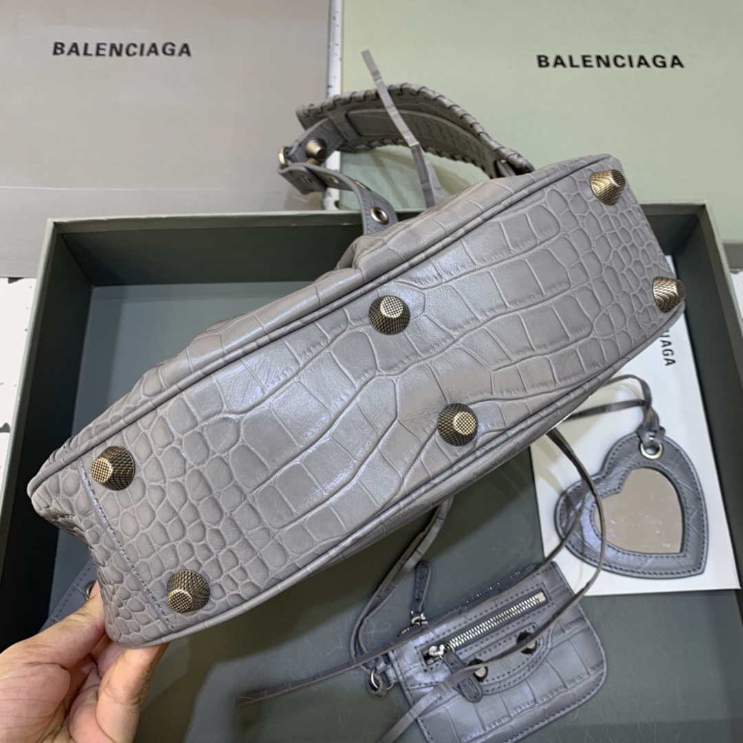 Recensisci per primo “Balenciaga 67130723 Le Cagole Piccola spalla Crocodile Borsa in rilievo in grigio”
