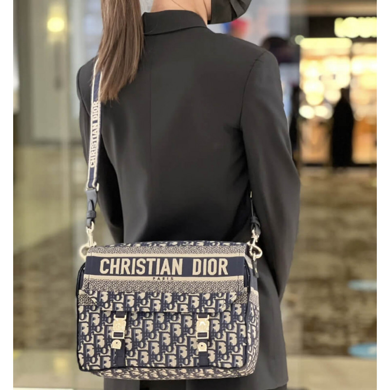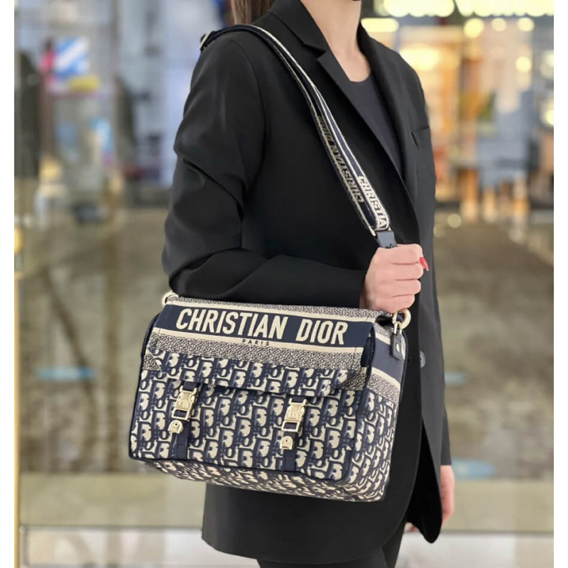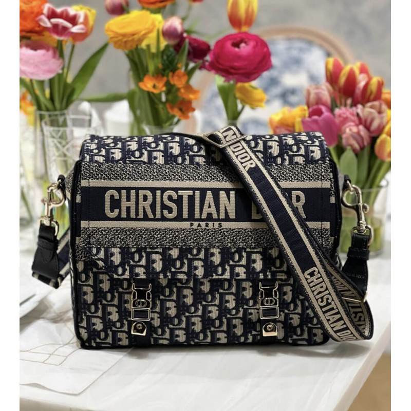 Maria Grazia Chiuri ha aggiornato la classica borsa a tracolla aggiungendo dettagli disirlati per un look rilassato e moderno. Completamente ricamato con il motivo obliquo blu Dior, la borsa Diorcamp è migliorata da un lembo distintivo di Christian Dior Paris, nonché da fibbie di CD ispirato al abbigliamento sportivo. Equipaggiato con una tracolla regolabile e rimovibile, la spaziosa borsa a tracolla media può essere indossata sopra la spalla o la traversa e farà un compagno urbano ideale.