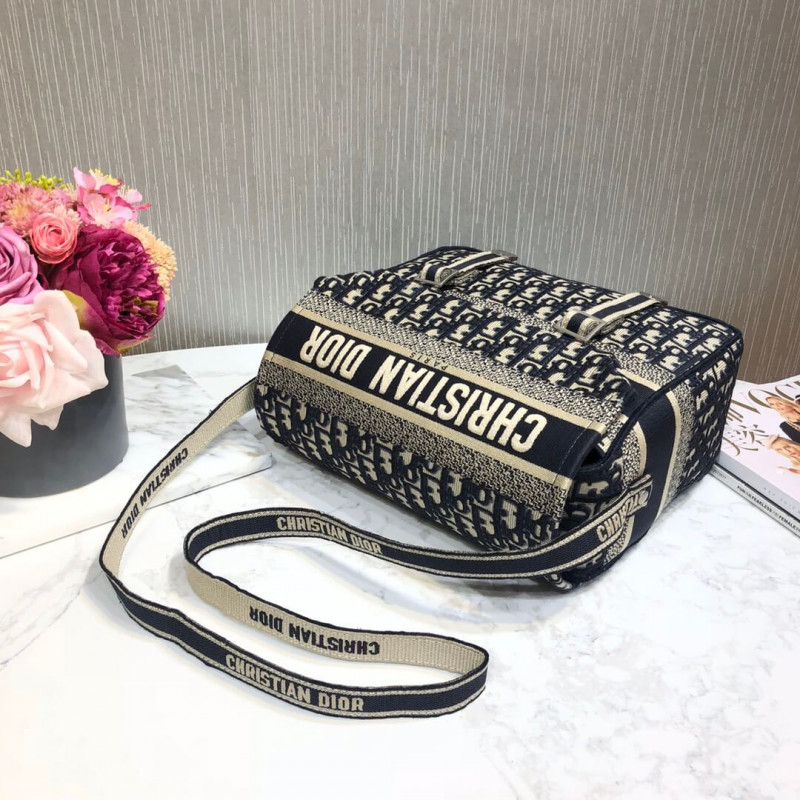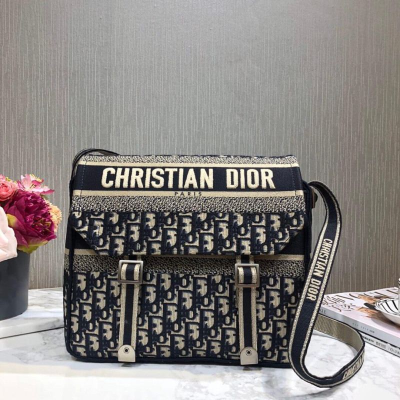 Borsa a tracolla in tela ricamata blu di Dior obliqua.