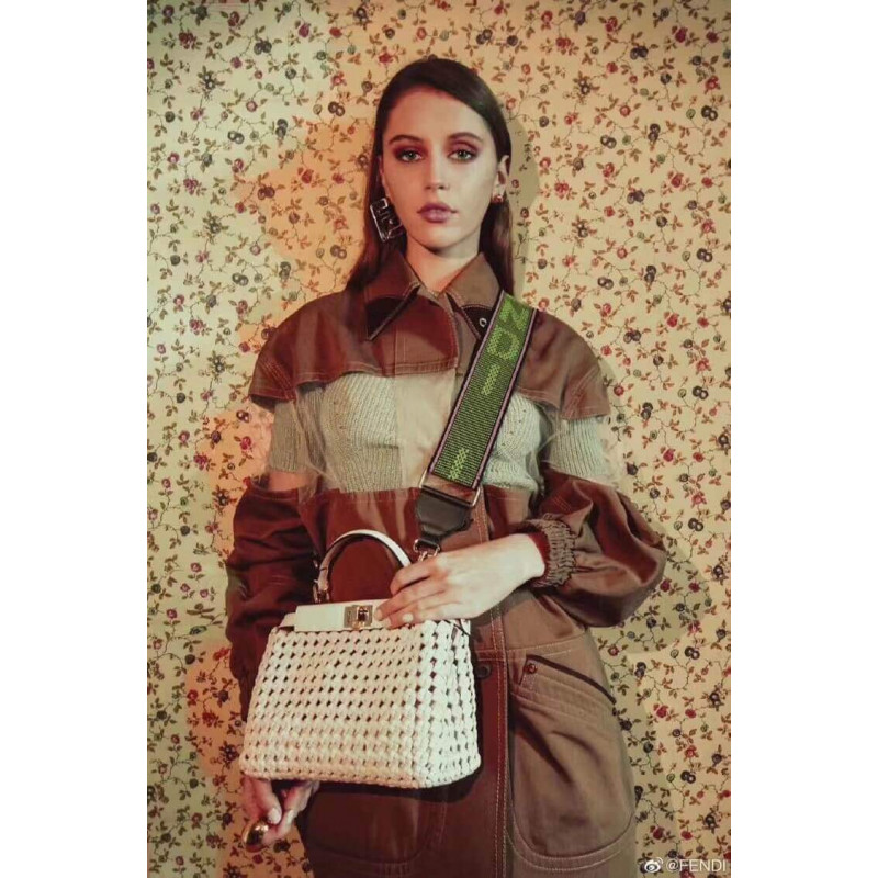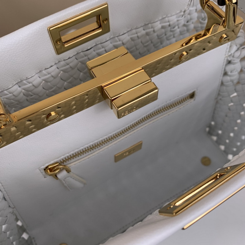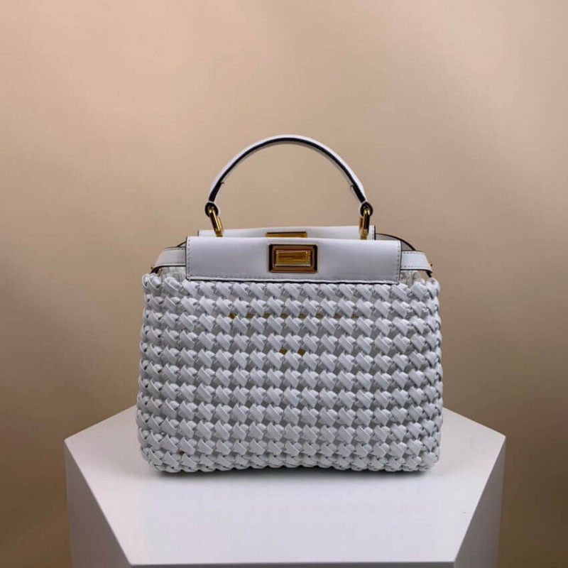 Piccola borsa iconica Peekaboo, realizzata con strisce di pelle tessuta a mano, Nappa e abbellita con la classica serratura su entrambi i lati.