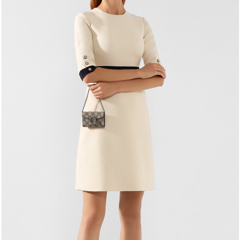 Una nuova introduzione per la collezione Pre-Fall 2019, la borsa della moneta è realizzata dalla tela monogramma della casa. La forma minima presenta l’emblemazione della tigre emblematica della linea dettaglio unico che fa riferimento al dio greco Dioniso, che si dice che nel mito abbia attraversato il fiume Tigri su una tigre inviata a lui da Zeus. L’accessorio è completato da un cinturino a catena staccabile, consentendo di trasportare al polso.