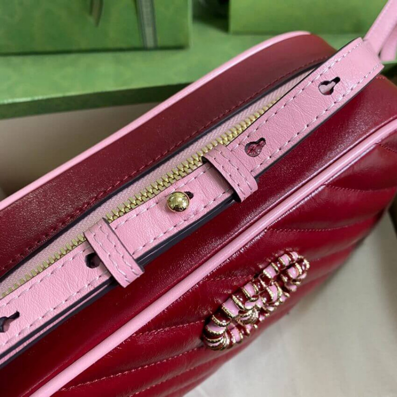 GG GG GG Marmont Piccola borsa a tracolla 447632 in pelle rossa ed smeralda