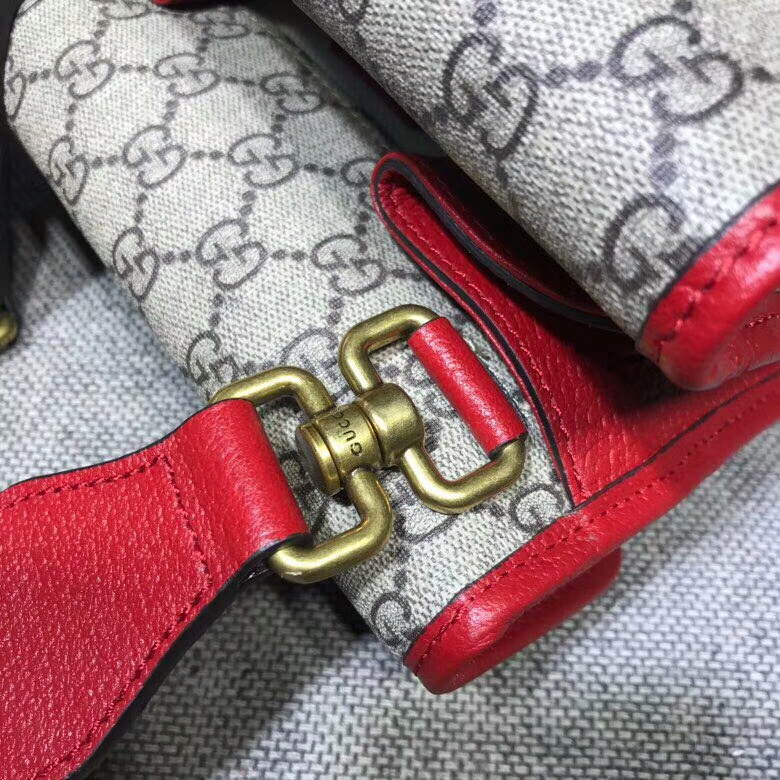 tela suprema beige/verde/rossa GG, un materiale a basso impatto ambientale, con rivestimento in pelle marrone