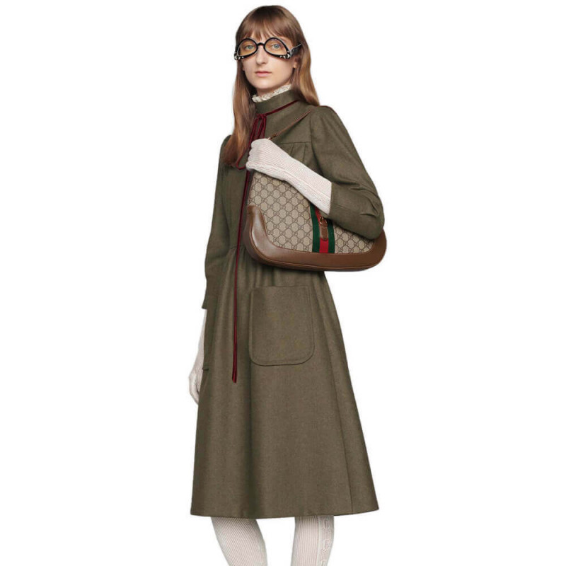 La reintroduzione della borsa Jackie per l’autunno inverno 2020 presenta una nuova interpretazione di un’icona storica di Gucci. Portato in primo piano, la forma riconoscibile è presentata in tela suprema GG e migliorata con una tracolla aggiuntiva e staccabile. Attaccato alla borsa con una chiusura di fibbia, il secondo cinturino aggiunge una sensazione contemporanea allo stile di archivio, fornendo nuovi modi per indossare la maniglia superiore, spalla per incrociare il corpo. Pezzi con modi versatili per indossare e stile abbracciano ogni persona che fa parte dello spirito individuale della casa. The Jackie 1961: disponibile esclusivamente nei negozi Gucci e su Gucci.com