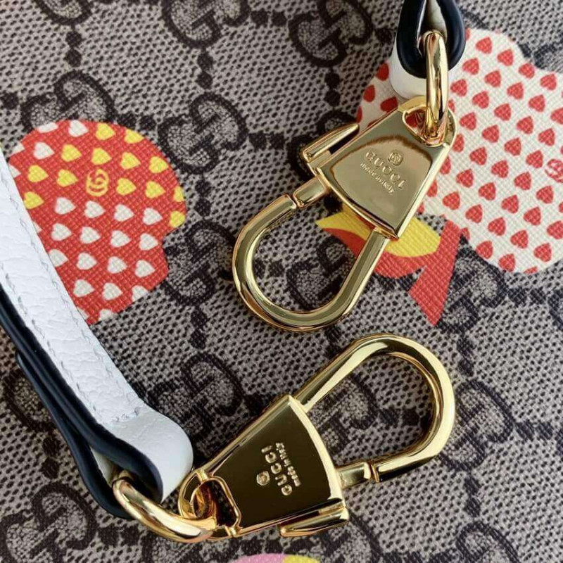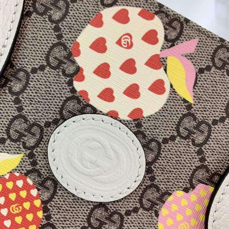 Un emblema dello spirito giocoso, della frutta e delle verdure di Gucci è diventato codici di casa contemporanei che animano le ultime collezioni. Parlando con questo tema, questa piccola tote è definita da un stravagante motivo di mele.