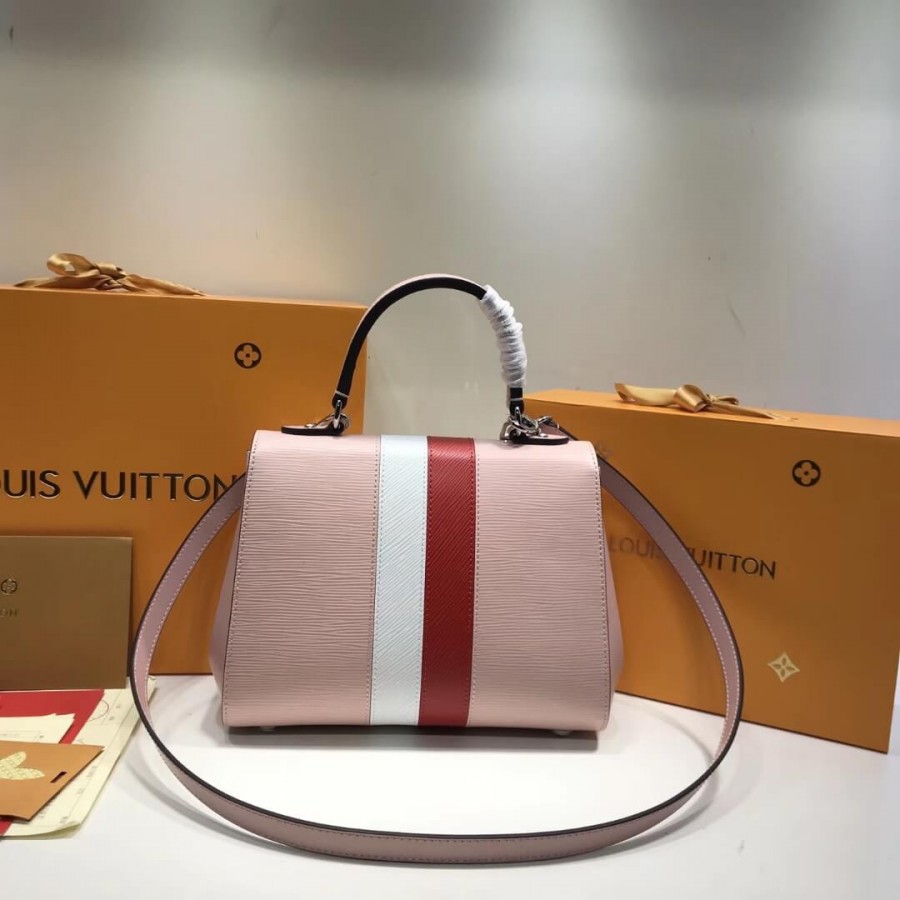 La silhouette strutturata di questa borsetta BB di Cluny è realizzata in pelle Epi a grana con rivestimento in pelle liscia e due strisce accattivanti. La striscia bicolore, un tema visto sulle scarpe della collezione autunno 2018, è un cenno alla tradizione della casa di personalizzare i suoi tronchi storici. coppie di hardware tono in argento con tocchi colorati per completare il look distintivo di questa borsa.