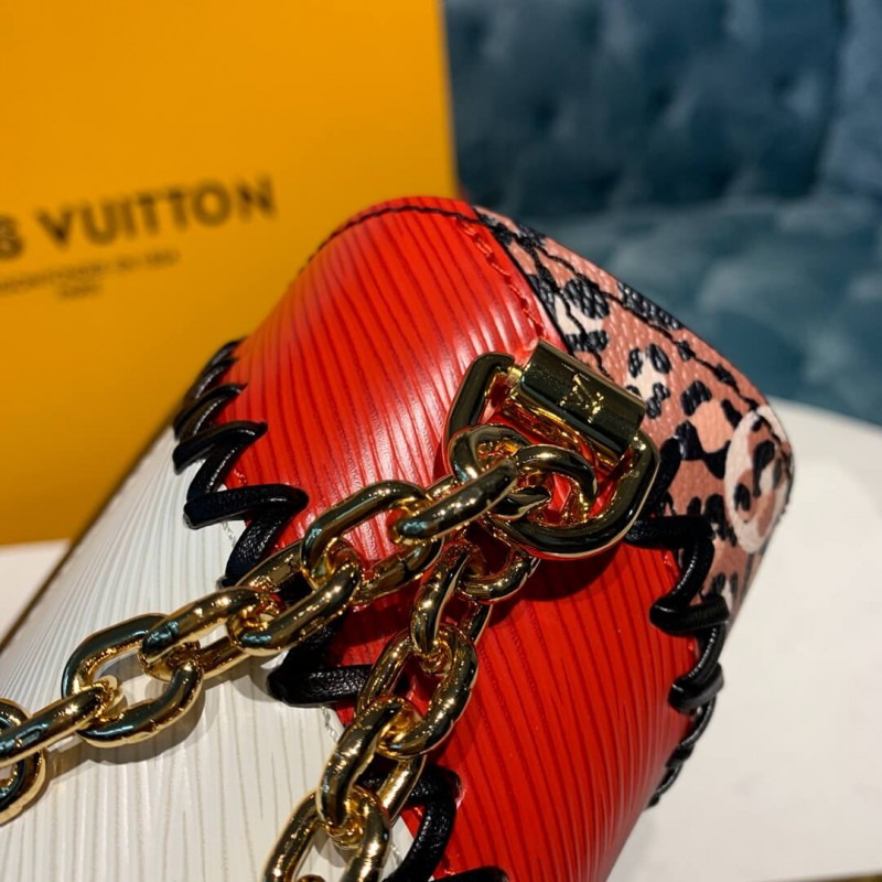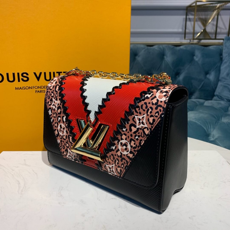 La borsetta Twist MM ha un nuovo look audace come parte dell’edizione speciale della giungla LV. La pelle EPI nera, rossa e bianca è combinata con tela monogramma con stampa animale per creare un patchwork grafico. Messo in sicurezza con una serratura a torsione LV, questa borsa può essere trasportata sulla spalla o attraverso il corpo.