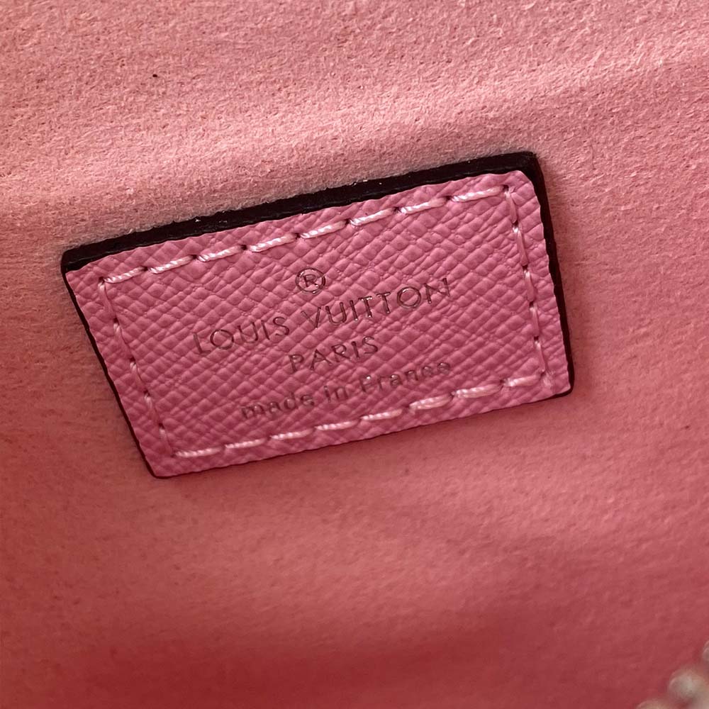 La double zip di Pochette è modellata da tela ebene più damena con rivestimento in pelle rosa e una firma LV stampata. Questa tasca versatile presenta due tasche zippate e una tasca aperta centrale per l’accesso diretto agli elementi essenziali. È una busta comoda sia portata a mano o sulla spalla.