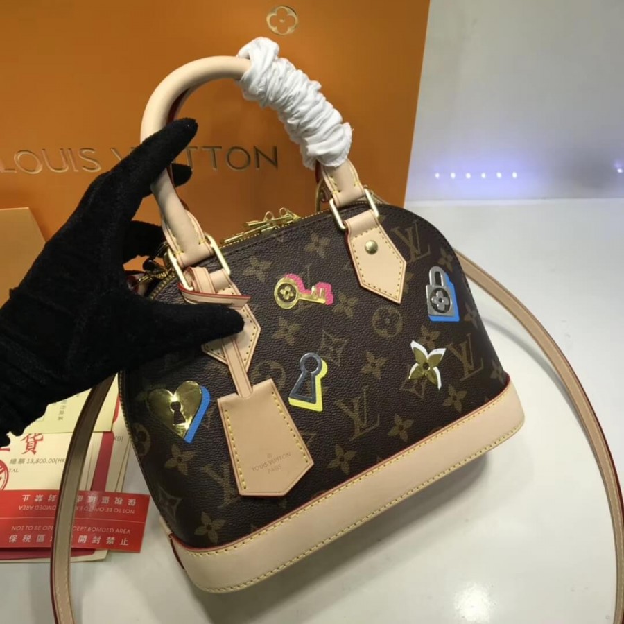 Per la primavera del 2019 la casa introduce il tema romantico dell’amore, giocato su borse come questo affascinante Alma BB e piccoli articoli in pelle. I motivi metallici colorati sono fusi con la classica tela monogramma, creando un effetto 3D fresco. Un versatile pezzo day-to-Evening, questo modello da collezione fa un delizioso regalo di San Valentino.