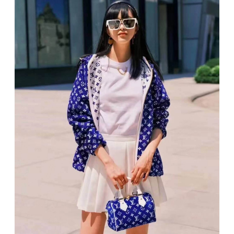 Questa edizione sportiva di The Speedy 20 Bag appartiene alla collezione LV Match, un omaggio ai tornei di tennis del Grand Slam. Il monogramma vellutato Jacquard è tessuto da filati di Chenille riciclati ed ecologici. Accentati da rivestimenti in pelle bianca, questo pezzo d’autore sembra elegante sia a bordo campo che in città.