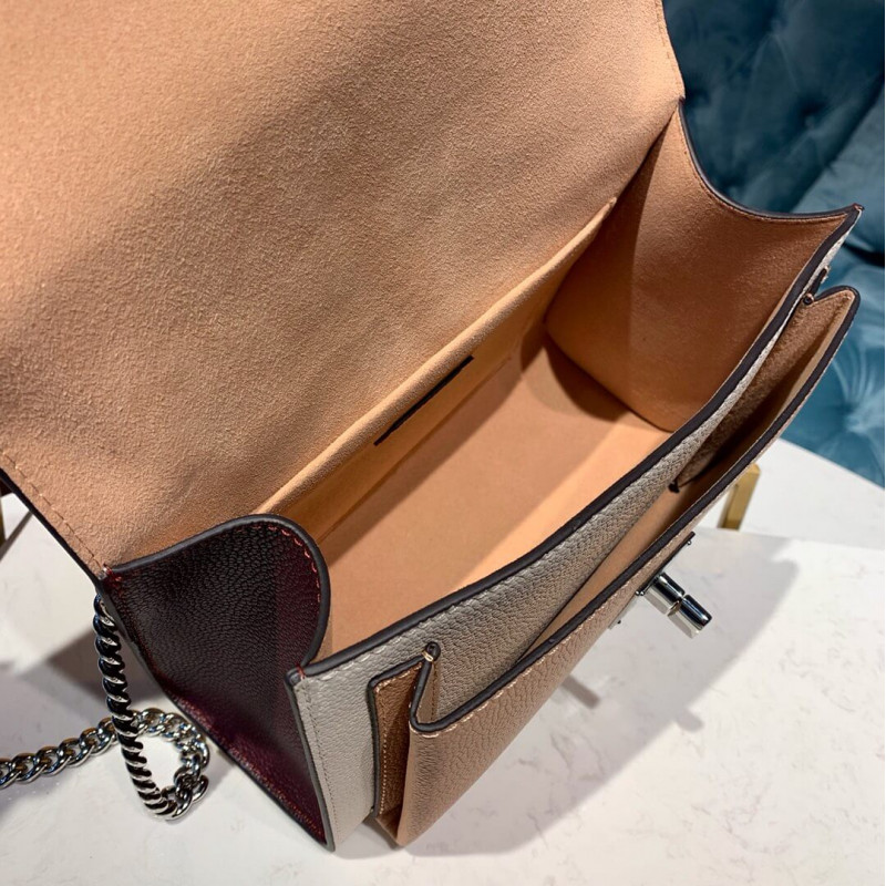 Per la primavera dell’estate 2019, la borsa Mylockme BB è disponibile in una morbida colorazione estiva di pelle di vitello rosa, bianco e bordeaux. La combinazione di colori luminosi è completata dal colore d’argento della serratura a turno LV firma e dal cinturino a catena regolabile. Il cuscinetto in pelle della catena porta comodo al trasporto delle spalle e all’abbigliamento incrociata.