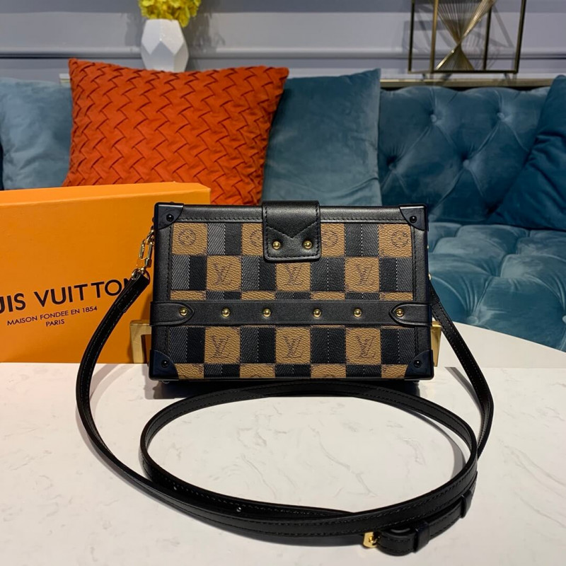 La borsetta Danier Tressage Petite Malle è un design elaboratamente realizzato che rende omaggio all’eredità di Louis Vuitton. Il monogramma o il monogramma inverso sulla tela della versione nera e la pelle di vitello flessibile sono intrecciati per creare un modello di controllo grafico che evoca la tela più durata. Questa interpretazione in miniatura di uno dei tronchi storici della casa è fissata da un’iconica chiusura al blocco S.