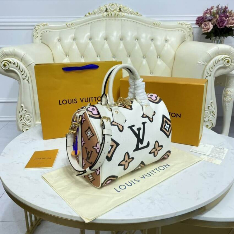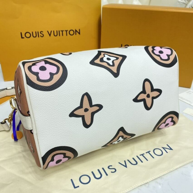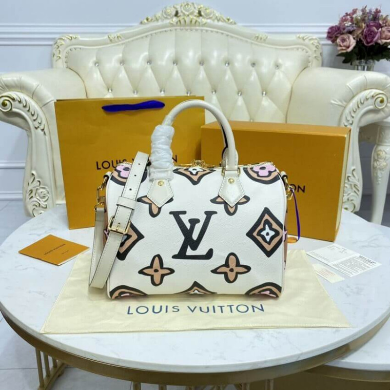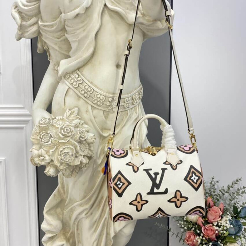 Questa rapida borsetta di bandouliere 25 proviene dalla capsula del cuore in autunno 2021. La forma classica è vestita con una stampa monogramma esclusiva con un aspetto sorprendente dipinto a mano, ispirato a un motivo della casa d’archivio del 1924. Poiché si svolgono come neutri, i colori autunnali luminosi della borsa creano un complemento elegante per le silhouette della stagione.