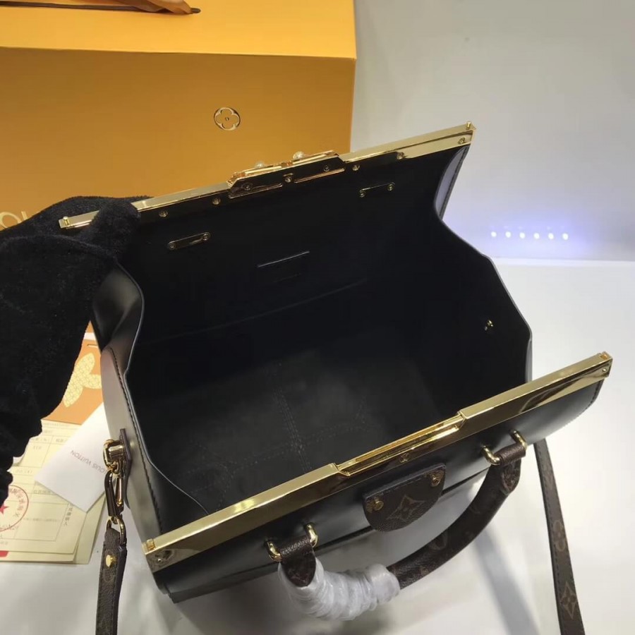 Per la pre-raccolta dell’autunno 2018, la casa reinventa il rapido medico nella tela monogramma iconica e in pelle di vitello nero con hardware audace ma elegante. Ispirato dalla classica borsa da medico, porta una forma più rigida e strutturata alla gamma sempre popolare di sacche da viaggio morbida. [BR]] hardware color dorato