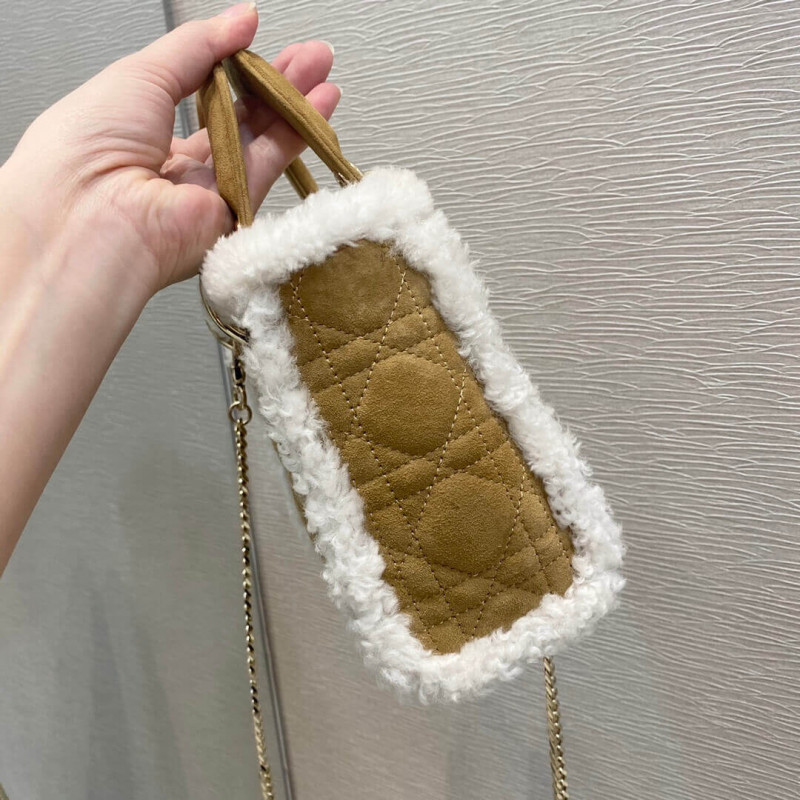 La borsa di Lady Dior incarna la visione di Eleganza e bellezza di Dior. Elegante e raffinato, lo stile senza tempo ma rilevante è realizzato in pelle di agnello inblack con cuciture cannage, creando la trama trapuntata immediatamente riconoscibile. The Pale Silver-Finish Metal D.I.O.R. ‘ Gli incantesimi sono adornati con cristalli fumosi, aggiungendo ulteriore abbellimento alla silhouette. Dotato di una tracolla a catena rimovibile, la mini borsa di Lady Dior è il compagno serale ideale.