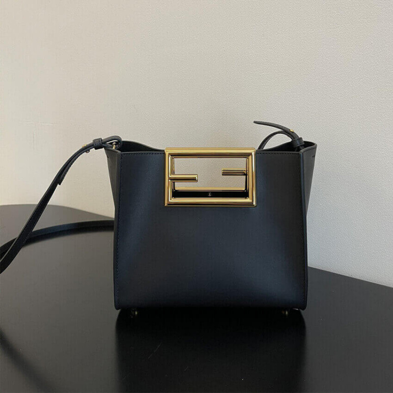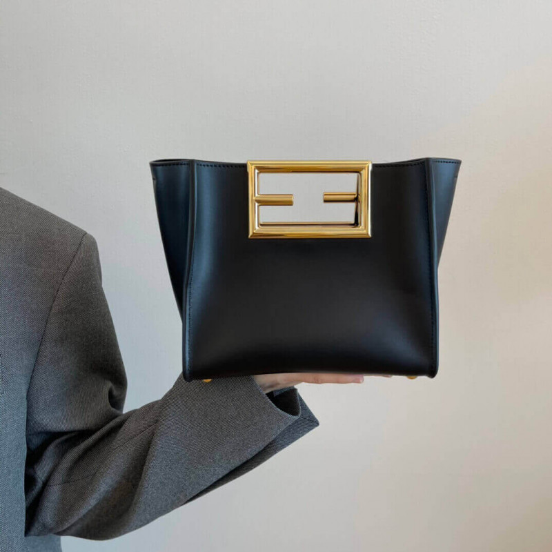 Piccola borsa Fendi Way fatta in pelle nera con manici in metallo con logo FF oversize.
