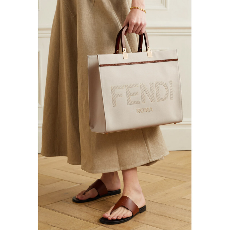 La casa di moda di Roma Fendi potrebbe aver fatto molta strada dalla sua concezione del 1925, ma la sua artigianato rimane senza rivali. Tagliato dalla tela di crema e debossato con un logo tonale alla parte anteriore, questa tote sunshine sapientemente realizzata serve come promemoria della storia artigianale di Fendi.